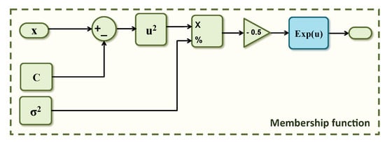 To reduce PAPR in OFDM transmitted signal, in [], the authors proposed another alternative solution based on Adaptive Neuro-Fuzzy Inference System (ANFIS). To map inputs to the membership functions, the proposed ANFIS [] uses a Gaussian membership function based on an exponential function as shown in Figure 20, where C and are, respectively, the center and the variance of the Gaussian membership function.