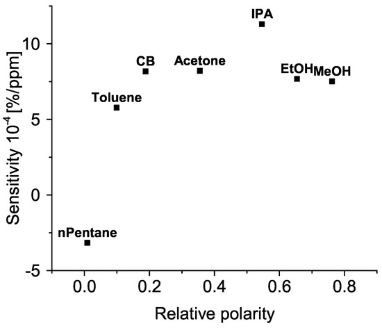 This relationship is shown in Figure 9. A hint of positive correlation is visible between the sensitivity and relative polarity of tested molecules.
