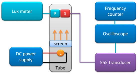 Lastly, the transducer was used with photoresistor light sensor. The schematic diagram of the measurements test stand is presented in Figure 8.