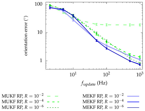 - LaViola, J.J. A comparison of unscented and extended Kalman filtering for estimating quaternion motion. In Proceedings of the American Control Conference, Denver, CO, USA, 4–6 June 2003; IEEE: Piscataway, NJ, USA, 2003; Volume 3, pp. 2435–2440. [Google Scholar]