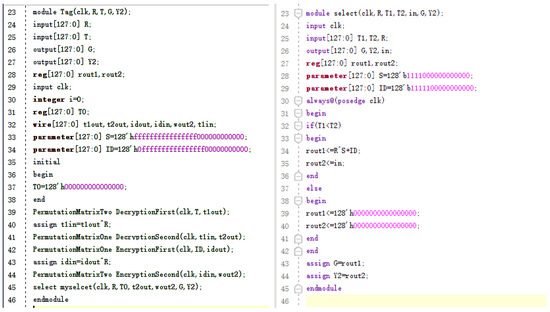 In our scheme, both the encryption and decryption of the data in the tag are completed by multiplying and . The same matrix multiplication circuit can be used to encrypt and decrypt in the tag to reduce the cost of tags.