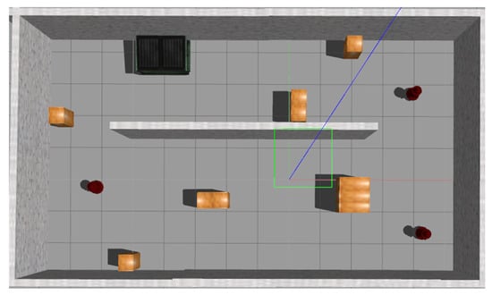 The training procedure of the local planner was implemented in a virtual environment simulated by Gazebo [51]. Figure 7 shows an overview of the simulation environment which contains a number of obstacles of different shapes and sizes. A Turtlebot was rendered as the robot platform and interacted with the environment using its laser sensor. We adopted the D3QN model to train the local planner and related training settings of this learning task are shown as follows: