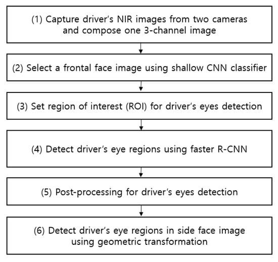Figure 1 shows an overall flowchart related to the proposed detection method for the driver’s eyes.