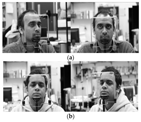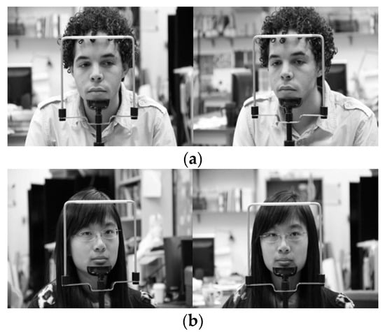 Examples of correct classification cases of frontal face image. (a) Left image selected; (b) Right image selected.