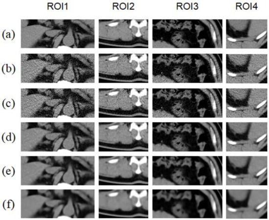 The PSNR value of the four ROIs marked by red squares in Figure 5a.