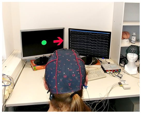 Experimental setup and an example of a recording session of motor imagery-electroencephalography (MI-EEG) recording.