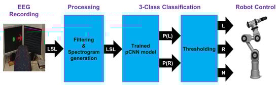 - Popov, E.; Fomenkov, S. Classification of hand motions in EEG signals using recurrent neural networks. In Proceedings of the 2016 2nd International Conference on Industrial Engineering, Applications and Manufacturing (ICIEAM), Chelyabinsk, Russia, 19–20 May 2016; pp. 1–4. [Google Scholar]