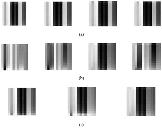 The purpose of the pooling layer is to perform a feature selection process to reduce the data dimensions while conserving the main characteristics of the data. Maximum pooling, mean pooling and randomly pooling are generally used approaches, which extract the points with the largest value, mean value and random values in the local accepted domain [25]. In the LeNet-5 structure, the pool size of 2 × 2 is used, which means that the input feature matrix is reduced by two times in two dimensions. The expression of the pooling layer is shown in Equation (7), where represents the maximum pooling operation. Generally, the output of layer is denoted as and denotes the output of former layer, where n is corresponding to the nth sample: