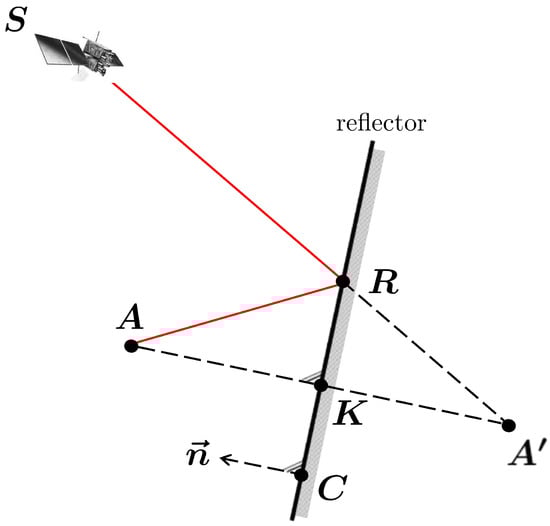where denotes the normal vector of the reflector plane and is the vector between the satellite and the reflection point . Afterwards, the angle can be expressed as