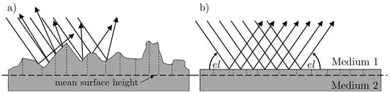 In order to formulate theoretical prerequisites for multipath occurrence, it is necessary to distinguish between diffuse and specular reflections. In Figure 11, both types of reflection are illustrated schematically.
