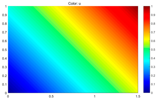 Using the PDE toolbox of MATLAB, the model of the rectangular homogeneous conductive plane with the boundary potential distribution of linear increase shown in Figure 2 is established. Next, the potential distribution of the model is solved, as shown in Figure 3.