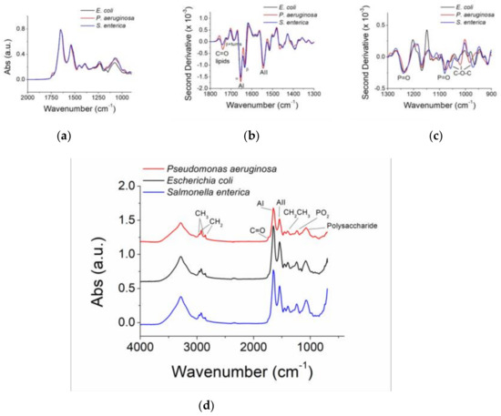 - Al-Qadiri, H.M.; Al-Holy, M.A.; Lin, M.; Alami, N.I.; Cavinato, A.G.; Rasco, B.A. Rapid Detection and Identification of Pseudomonas aeruginosa and Escherichia coli as Pure and Mixed Cultures in Bottled Drinking Water Using Fourier Transform Infrared Spectroscopy and Multivariate Analysis. J. Agric. Food Chem. 2006, 54, 5749–5754. [Google Scholar] [CrossRef]