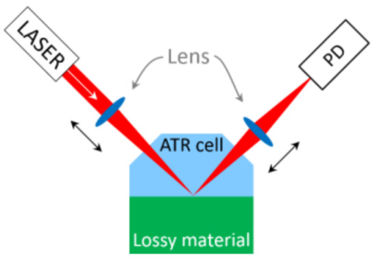 To increase the probability to detect a bacterium on the ATR surface, the size of the laser spot on the ATR surface has to be considered. On one hand, the laser spot should be large to increase the probability of collecting bacteria on the surface, on the other hand the spot size should be small to increase the effect of a single bacterium or a few bacteria respectively on the sensor signal. To get a maximum amount of flexibility, we propose a setup as shown in Figure 10.