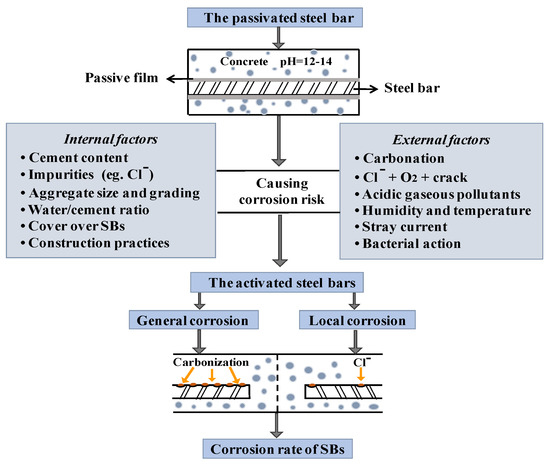 Corrosion process and mainly influencing factors of corrosion of steel bar (CSB).