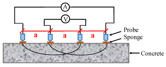 The schematic diagram of four-electrodes measurement for concrete resistivity.