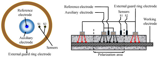 - Dong, Z.; Luo, Y.; Yi, Y. Smart of guard ring electrode technique for online monitoring of corrosion of reinforced concrete. Corros. Sci. Prot. Technol. 2009, 21, 247–249. [Google Scholar]