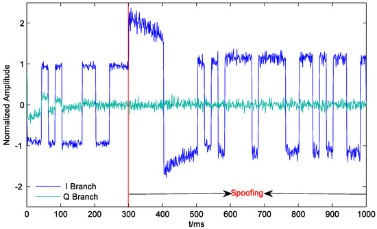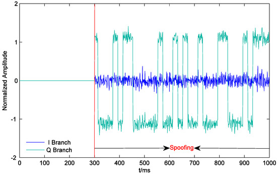GPS is susceptible to a variety of interferences due to the low signal power. For GPS receivers, there are two major types of interferences at present: jamming and spoofing. Strong interferences are used in jamming, usually resulting in loss of lock and positioning failure of the target receiver. Hence the concealment of this interference is poor. On the other hand, spoofing is a structural interference, the counterfeit signals rebroadcasted by spoofers are very similar to the authentic signals from satellites and can gradually induce the positioning results of the target receiver to a false location [1,2,3,4]. Compared with jamming, spoofing is less likely to be found by the target receiver and hence is more sinister.