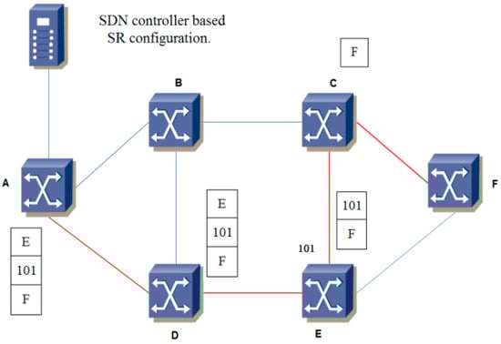 Traffic engineering refers to a series of methods to optimize the performance of a network [8]. The goal of traffic engineering is to dynamically analyze and predict the data flow in the network. For different types of networks, traffic engineering technology has been evolving to meet different needs. With the development of network technology, users have higher performance and reliability requirements for the application services of networks. So, the stability and cost of networks are very important. SDN shows its advantage in effectively solving this problem. SDN provides a better foundation for traffic engineering. First, SDN provides a centralized global view, and the controller can get the global network status in real time. Second, SDN provides a programmable data layer interface, and the operator can dynamically redistribute the network resource. In addition, the switches of multiple device vendors use a unified programming interface to provide full openness. The idea of SR is to divide an end-to-end path into multiple segments. Each segment is identified by an SID [21]. If the network state changes or the policy needs to be changed, the SDN controller recalculates the path and updates its segmented list at the previous first hop or segment changed router.