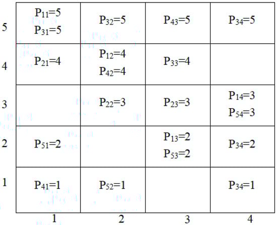 denotes the m-th target value of the k-th non-dominant solution in the Pareto optimal solution set, and can be mapped into a two-dimensional planar grid with K × M cells according to (1):