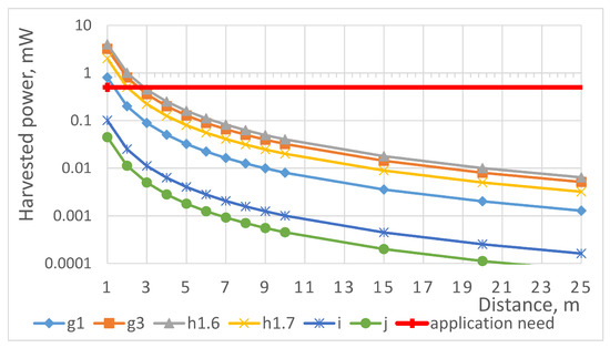As one can see from Figure 2, among all the ISM bands available, the h1.6 band enables transferring the maximum amount of energy. In addition, the presented results reveal that the amount of energy available exceeds the amount required for powering our target application. Therefore, we can conclude that the targeted application is feasible.