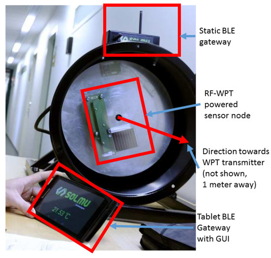 The radio frequency identification (RFID) is currently the most widely used real-life technology, which utilizes the RF-based WPT principle. The transmitted by the reader radio signal is received, remodulated and backscattered by a generally-passive tag. The traditional RFID tags were sending only the static information, stored in their non-volatile memory: the unique identifiers, serial number or product-related data. Nonetheless, the contemporary tags can integrate one or multiple sensors ([13,14,15]), which are powered from the incoming signal and data of which are scattered back. The two principal limitations of the RFID technique are the very limited complexity of the respective applications due to the scarce power budget availability, and the need of having a reader (or the transmitter) device decently close to the tags for the system to run.