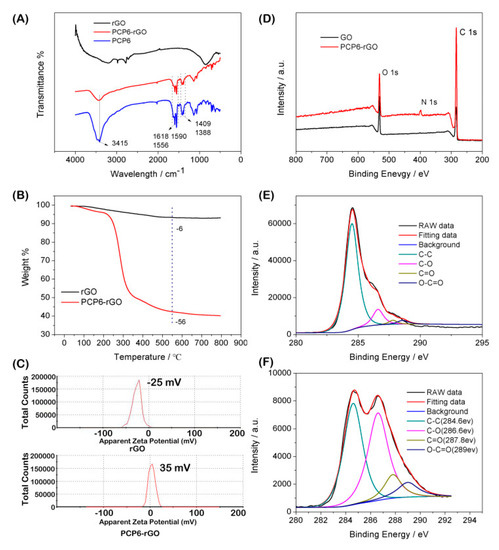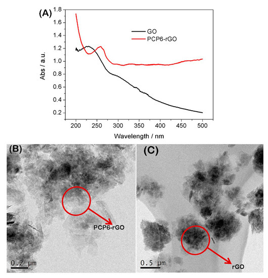 3.1. Characterization of the PCP6-rGO Hybrid Nanomaterial