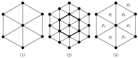 Figure 1(1)). The 3D hexagonal mesh HX(3) is constructed from HX(2) by including additional triangles around the boundary of HX(2) (see