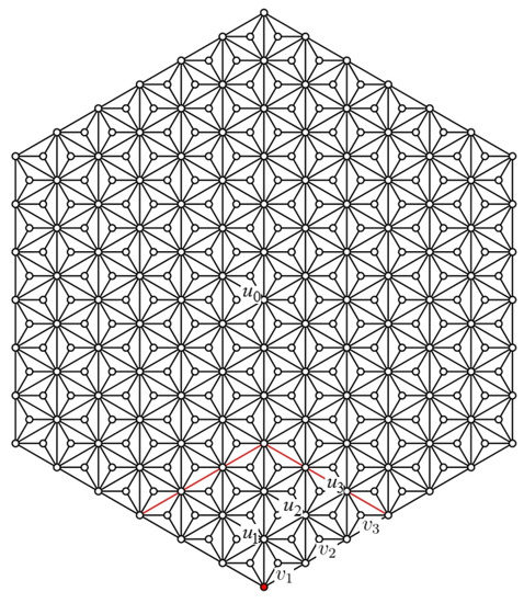 Proof of Claim 2: Assume for any vertex u in . Define a function with for any vertex u in . By the proof of Corollary 1, we know that satisfies properties (i)–(iii) with in Definition 1. Therefore the function h is a two-vector coloring scheme on . Now we will show that satisfies Q4–Q7 in the following.