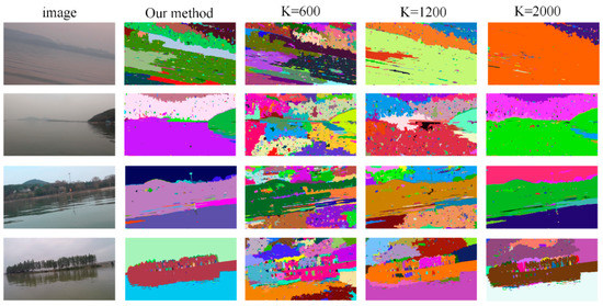 The proposed adaptive segmentation is based on the graph-based segmentation algorithm. To demonstrate the robustness of our multistage adaptive segmentation algorithm, we compare our method with the other similar graph-based segmentation algorithm [25] which has a standard implementation in the popular OpenCV library. As shown in Formula (5), there is a parameter k controlling the grain level of the segmentation, so we run the algorithm multiple times with different k value and compared the results with that of the proposed method.