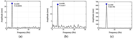 Experimental results for the amplitude in each translational direction: (a) X axis; (b) Y axis; (c) Z axis.