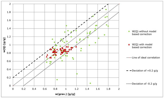The automated measurements with model-based correction showed a significantly better correlation to the gravimetrically measured water contents. Implementation of the Kalman filter resulted in the elimination of measurement outliers and consequently a more accurate representation of the system state was obtained as compared to direct measurements taken from the system (Figure 7).