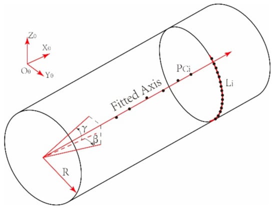 During the measurement process, the laser scanning sensor moves along the direction parallel to the axis. This process can be regarded as to obtain the corresponding profile point sets by intersecting a series of parallel sections with the surface of the cylinder.