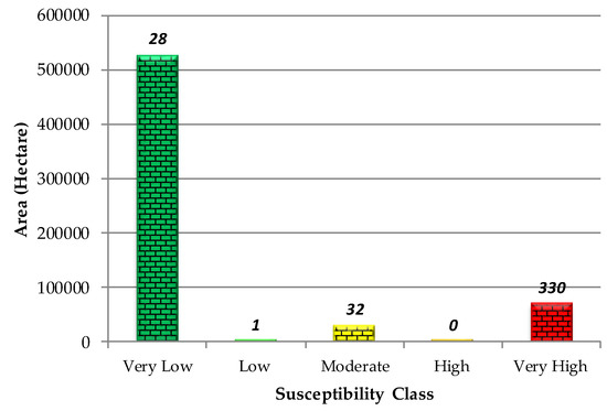 Figure 7. Histogram landslide susceptibility occurrence within each susceptibility class.