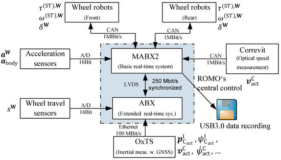 Many demanding mechatronic systems, like the German Aerospace Center’s (DLR’s) ROMO (short for ROboMObil—DLR’s robotic electric vehicle) [1], employ state dependent nonlinear optimization-based control (e.g., [2]), which needs an accurate knowledge of the system states. Often, these states cannot be gathered directly through sensors, as an appropriate measurement principle for the searched quantity is not available (e.g., determination of the state of charge of a battery), or the sensor is expensive and therefore it is desirable to be economized (e.g., vehicle over ground velocity sensing). Especially for future autonomous vehicles, it is necessary to determine an accurate vehicle position so as to guarantee a reliable vehicle path/trajectory generation, and to follow control functionality cf. [2,3,4].