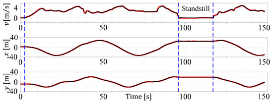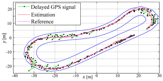In a realistic application with a consumer quality GPS sensor, a latency between 50–1000 ms [11,12] is usually considered. This implies a drastic delay in comparison to other in-vehicle sensor systems, for example, the inertial measurement unit (IMU). Here, this fact motivates the discussed observer example with highly delayed measurements in a vehicle position estimation application.