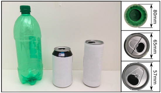 During data collection for this first experiment, a human operator executed rotations on a previously grasped object. Figure 14 shows three objects used during this first experiment and its respective diameter information.