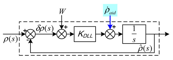 The PLL-assisted DLL mode includes a PLL frequency-assisted loop and a code tracking loop. Code loop-assisted information is calculated in the PLL frequency-assisted loop. The code tracking loop includes loop gain and noise bandwidth. The error model of PLL-assisted DLL tracking is shown in Figure 7.