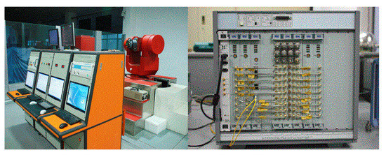 Figure 8 depicts the semi-physical simulation experiment system, which was composed of a master control computer, a numerical simulation computer, a three-axis simulation platform, a satellite simulator, a jammer, and measurement and control equipment. The system can be used to simulate and reproduce the air movement environment in the laboratory and to test, verify, and evaluate the performance of the integrated navigation system.