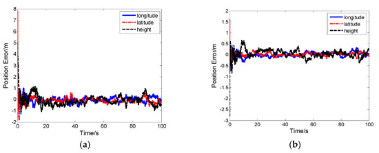 (a) Position error of the conventional ultra-tight integration. (b) Position error of our proposed ultra-tight integration.