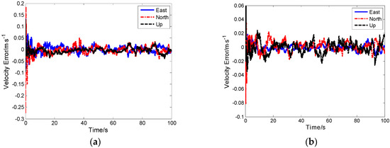 (a) Velocity error of the conventional ultra-tight integration. (b) Velocity error of the innovative ultra-tight integration.