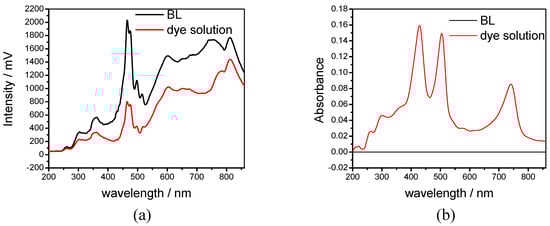 (a) Transmission spectrum of a hard-clad multimode silica optical fibre with the plastic cladding removed (black line), and after (red line) immersion into a porphyrin dye compound; (b) absorption spectrum calculated from Figure 4a [37,42]; Reprinted from [37] under creative common free licence (http://creativecommons.org/licenses/by/4.0/).
