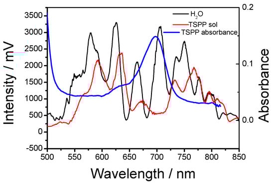 Figure 4 shows a typical example of the evanescent wave spectroscopy that measured absorption features of the conducted a porphyrin dye compound using a hard-clad multimode silica optical fibre (core diameter, 200 ± 5 µm; cladding diameter 225 ± 5 µm, coating diameter 500 ± 30 µm, Pure Silica/TECS Hard Cladding Tefzel, FT200UMT, Thorlab) with a section of the plastic cladding removed [37]. Figure 4b demonstrates the absorption features of the porphyrin dye compounds located at ca. 420, 494 and 710 nm.