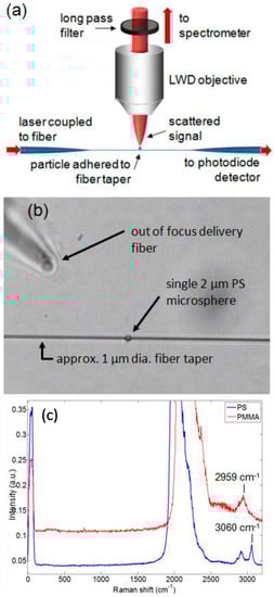 - Edwards, P.S.; Janisch, C.T.; Peng, B.; Zhu, J.; Ozdemir, S.K.; Yang, L.; Liu, Z. Label-Free Particle Sensing by Fiber Taper-Based Raman Spectroscopy. IEEE Photonics Technol. Lett. 2014, 26, 2093–2096. [Google Scholar] [CrossRef]