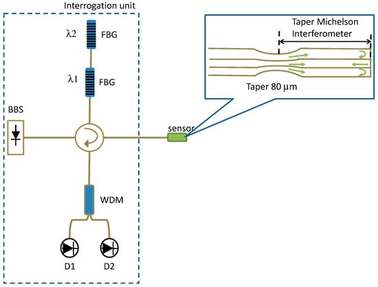 - Li, Y.; Chen, L.; Harris, E.; Bao, X. Double-Pass In-Line Fiber Taper Mach–Zehnder Interferometer Sensor. IEEE Photonics Technol. Lett. 2010, 22, 1750–1752. [Google Scholar] [CrossRef]