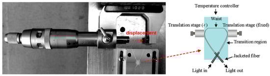 - Luo, H.; Li, X.; Zou, W.; Li, X.; Hong, Z.; Chen, J. Temperature-Insensitive Microdisplacement Sensor Based on Locally Bent Microfiber Taper Modal Interferometer. IEEE Photonics J. 2012, 4, 772–778. [Google Scholar] [CrossRef]