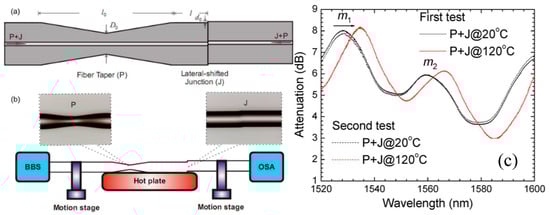 - Lu, P.; Men, L.; Sooley, K.; Chen, Q. Tapered fiber Mach–Zehnder interferometer for simultaneous measurement of refractive index and temperature. Appl. Phys. Lett. 2009, 94, 131110. [Google Scholar] [CrossRef]