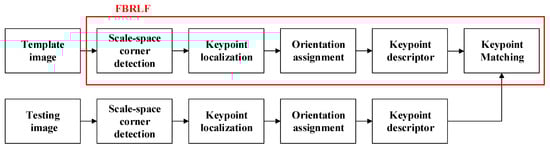 A flow chart indicates the template image and testing image are both utilized the proposed FBRLF method to compare the similarity. The procedure of the proposed FBRLF method is shown as the red box.