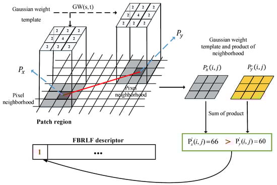 where and represent and processed using the Gaussian weight template; denotes the final comparison outcome. Equation (13) indicates that the feature descriptor of the FBRLF is constructed through a binary method.