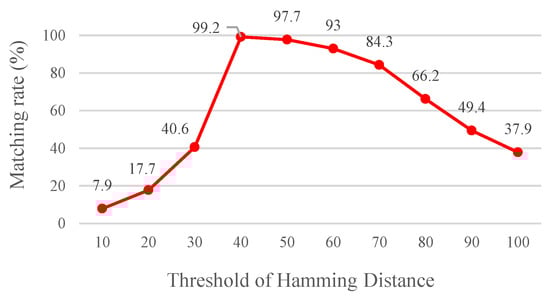 Matching rate under various Hamming distance threshold values.