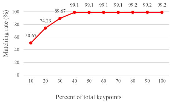 As it can be seen that selecting 40% of the total feature points can yield a matching rate that is simply 0.1% lower than that of acquiring 100% of the total feature points. Consequently, this study adopts 40% feature points for applying the voting mechanism.